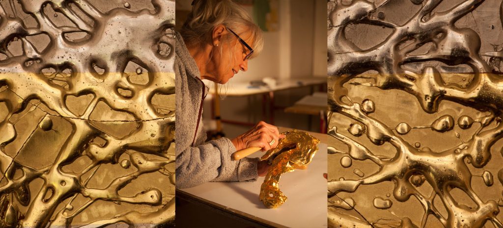 Das Arbeiten mit Blattmetall, Gold, Silber, Kupfer, Messing steht im Mittelpunkt.